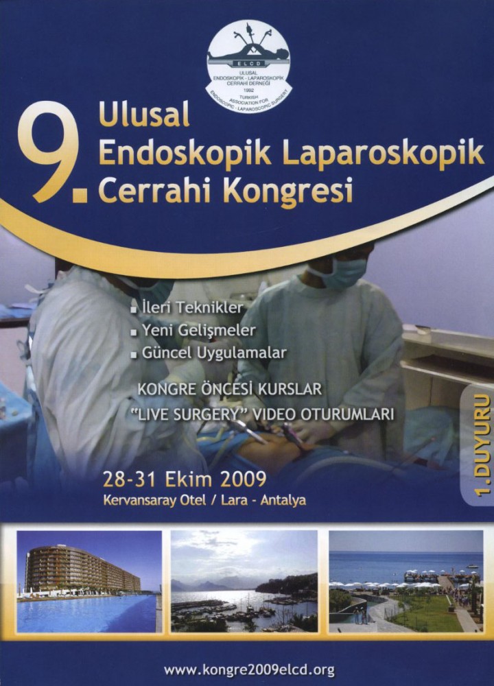 9.Ulusal Endoskopik Laparoskopik Cerrahi Kongresi 28-31 Ekim 2009