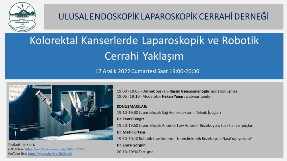 Kolorektal Kanserlerde Laparoskopik ve Robotik Cerrahi Yaklaşım 17 Aralık 2022